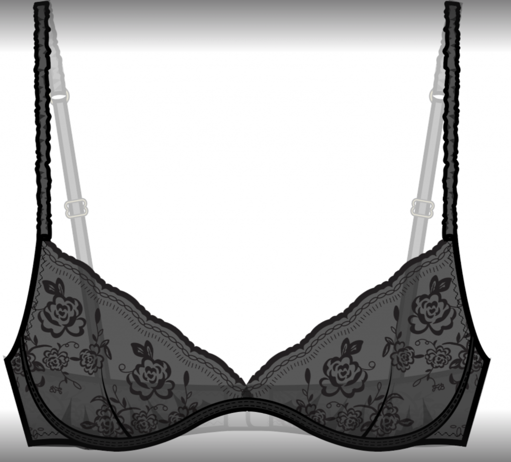 The most important detail I had to carefully consider was the pattern’s overall scale (the size of the rose, hole, edge, etc.). I printed out multiple scales to see how they look when used as a bra fabric, holding them against my chest and measuring. Something I learnt through this experiment is that because we will be using the same pattern across all the bra sizes, the pattern needs to be neither too big that the pattern is cramped and cut off on a smaller bra, nor too small, creating emptiness when used on a bigger-sized bra.